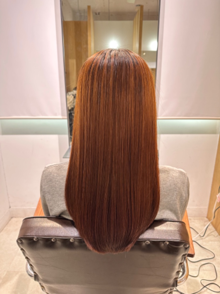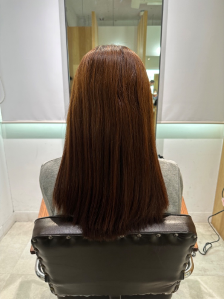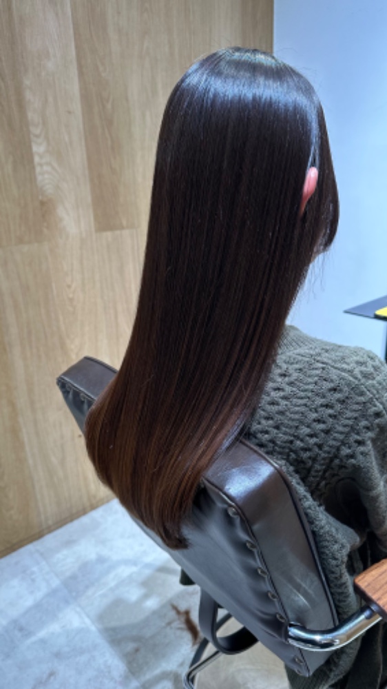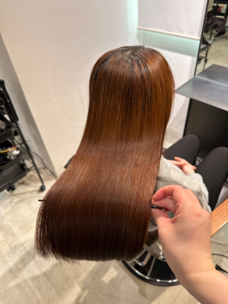 今日は、綺麗に伸ばしていくための左右の長さ、前後の長さ調整とトリートメントをしていただきました。