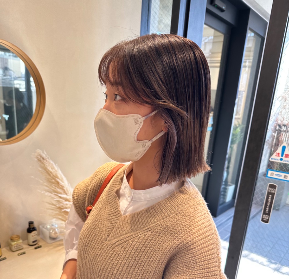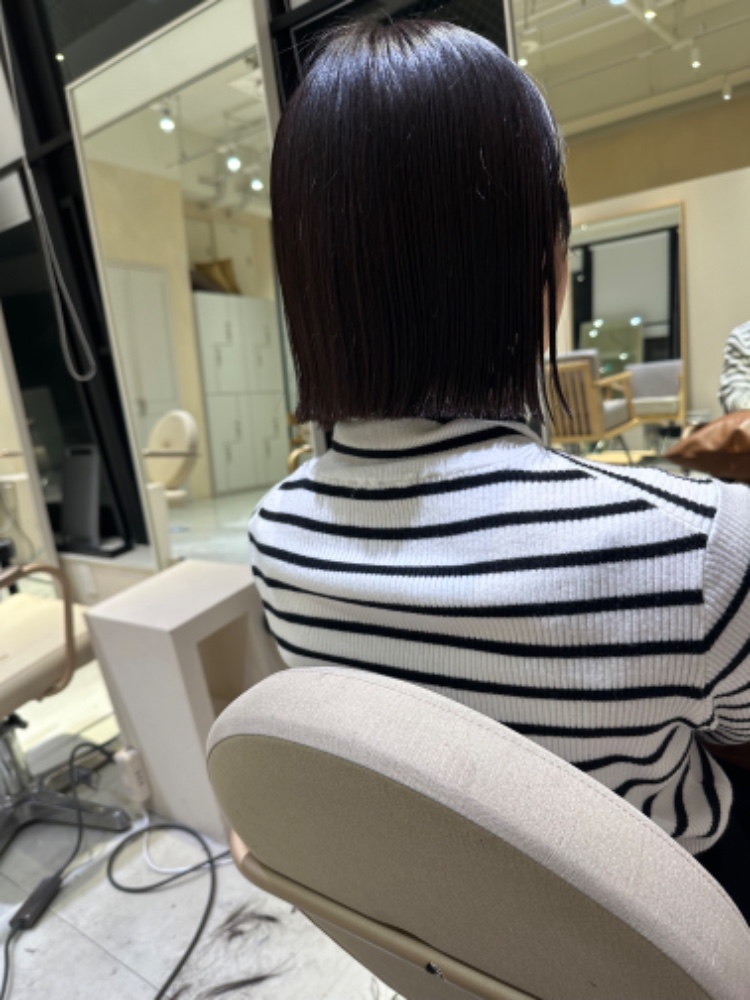 今回は施術していただきありがとうございました! 約5ヶ月ぶりの美容室だったので緊張してたんですが、優しく相談にのっていただけて嬉しかったです♡ バイト先にバッサリ切ったね!と驚かれたんですけど、自分的に気分転換の意味合いもあったので久しぶりに短めのボブに戻れて良かったです。 グレージュとも悩みましたが春らしく明るくしたいと思ってたので、明るくしつつでも柔らかい色に仕上げてくださってお気に入りです🤍 ̖́- ホームケアしっかり頑張ってまた綺麗に伸ばせたらカラーお願いしたいと思います…!ありがとうございました!