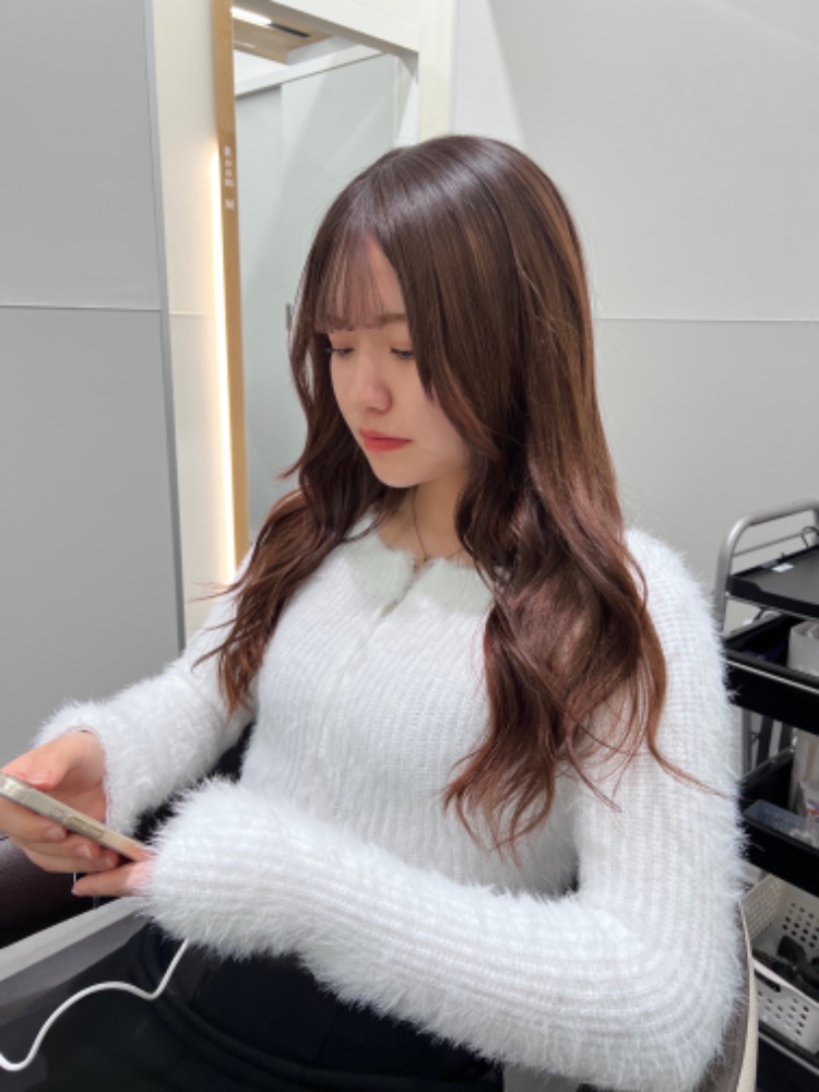 以前久々に来て、ほかの美容院の施術の直しをしてもらったものです! 前よりも髪が伸びてたときに扱いやすく色味も可愛いのでまたお願いしました。 年齢やハマっている系統、どんな風に扱っていきたいのかなど沢山相談乗って貰えて大満足です。 ありがとうございました!