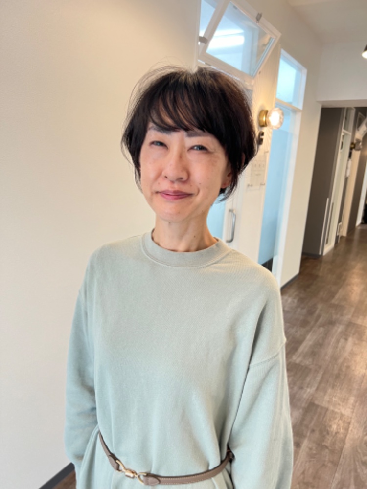 初めての来店です。4年近く伸ばした髪をドネーション。久しぶりにショートカットにしました。年齢的に髪が減ってきたことと白髪が日々の悩みの種でした。その悩みと不安を見事に解決していただけました。予約の時点から、その点も考慮いただけたので、ありがたかったです。毎日楽しく過ごせそうな自分になれました。ヘアスタイルは大事だなと改めて実感しました。