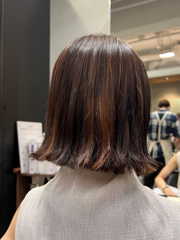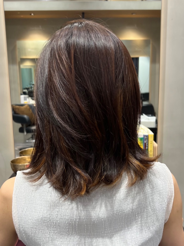 酸熱トリートメント、丁寧に施術していただいてありがとうございます。自分で触ってもサラサラなのが嬉しいです:) カラーもうちの照明で見てもピンク系が丁度いい感じで出ています。 またよろしくお願いします。