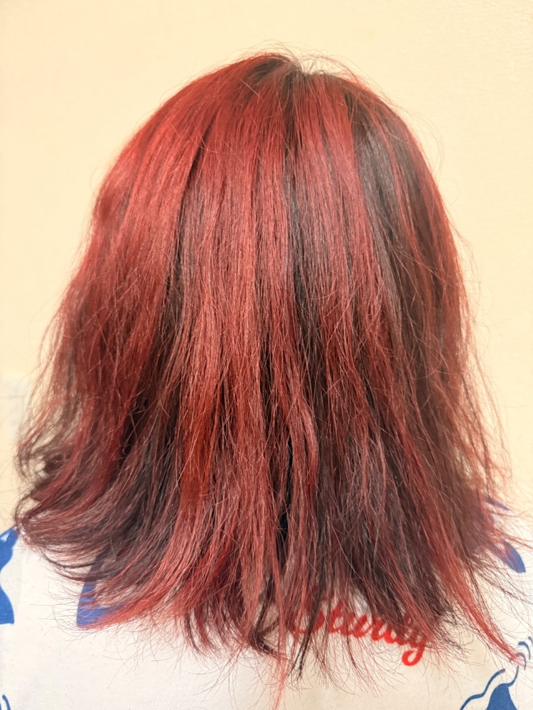 今日は赤いハイライトを入れてもらいました、すごくいい感じに仕上がりました!🤩 本当にありがとうございます!